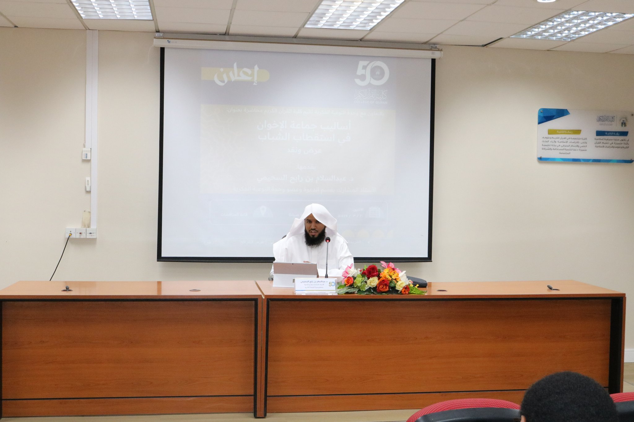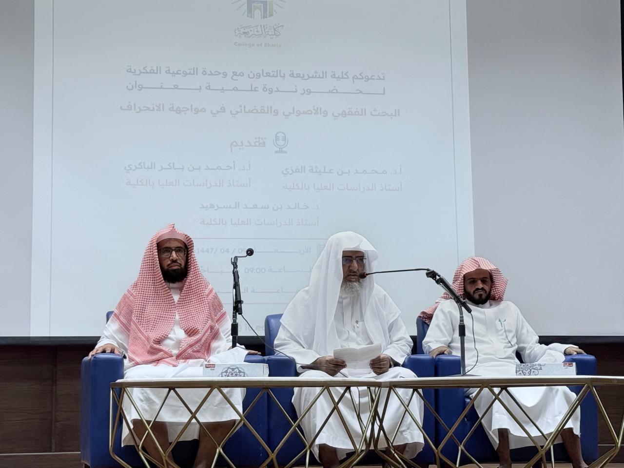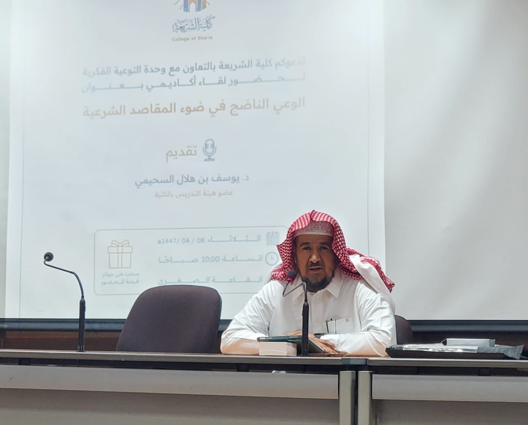 تنفيذ ندوة توعوية لمنسوبي كلية الشريعة بالتعاون مع وحدة التوعية الفكرية يوم الأربعاء 09-ربيع الثاني-1447