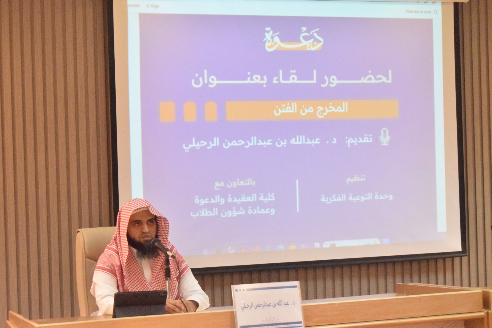 تنفيذ لقاء توعوي لطلاب كلية العقيدة بالتعاون مع وحدة التوعية الفكرية يوم الثلاثاء 24-ربيع الأول-1447