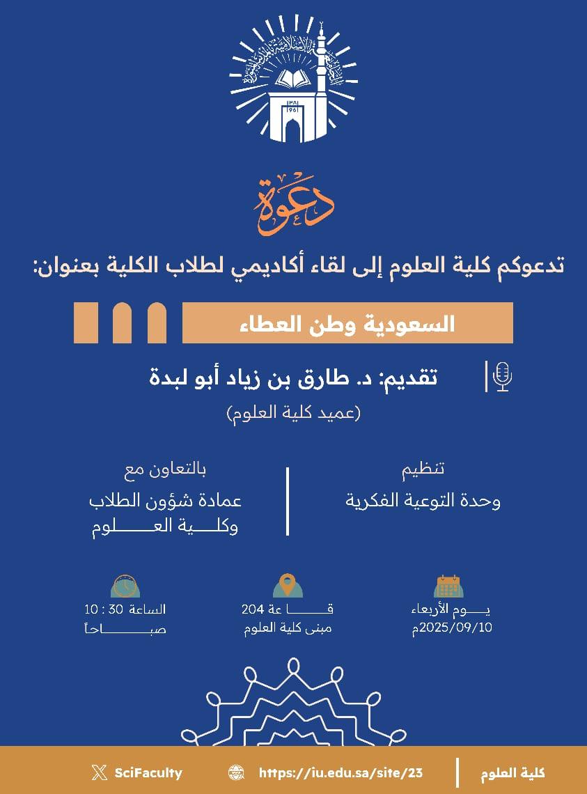 تنفيذ لقاء توعوي لطلاب كلية العلوم بالتعاون مع وحدة التوعية الفكرية يوم الأربعاء 18-ربيع الأول-1447