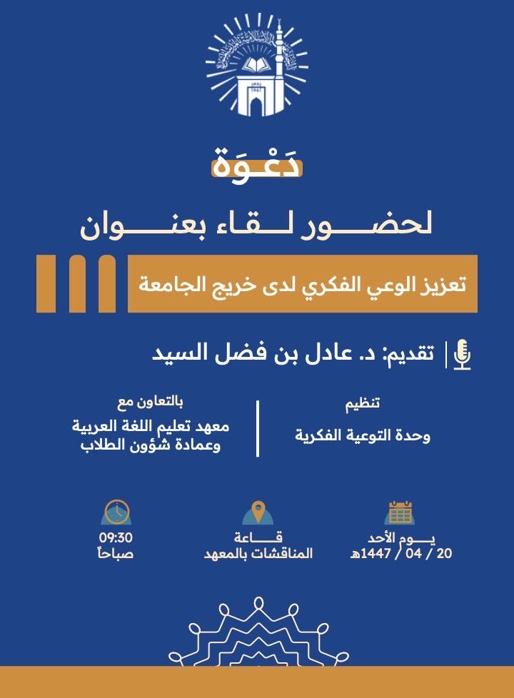 تنفيذ لقاء توعوي لطلاب معهد تعليم اللغة بالتعاون مع وحدة التوعية الفكرية يوم الأحد 20-ربيع الثاني-1447