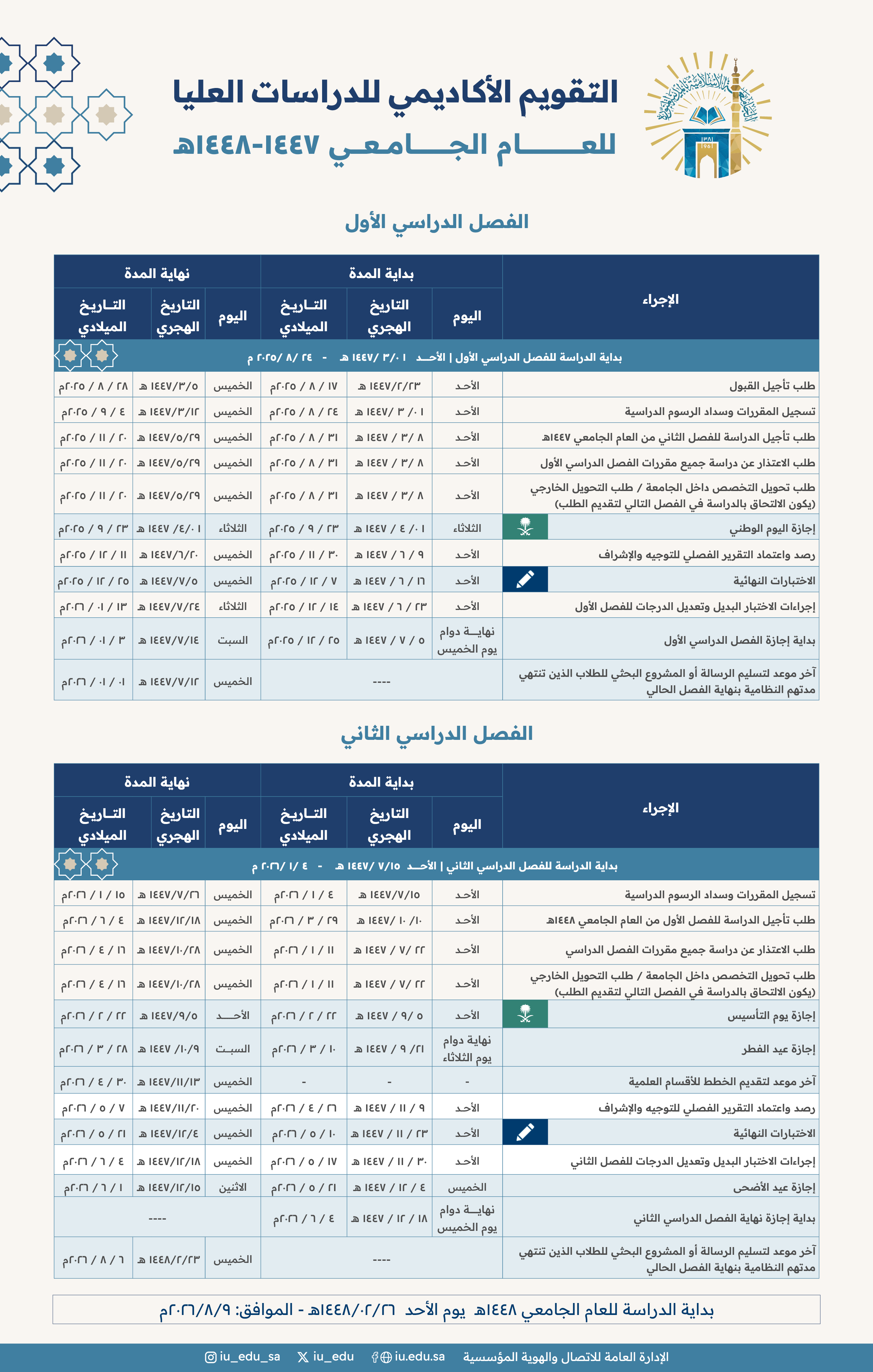 التقويم الأكاديمي للدراسات العليا للعام الجامعي 1447 - 1448هـ.
