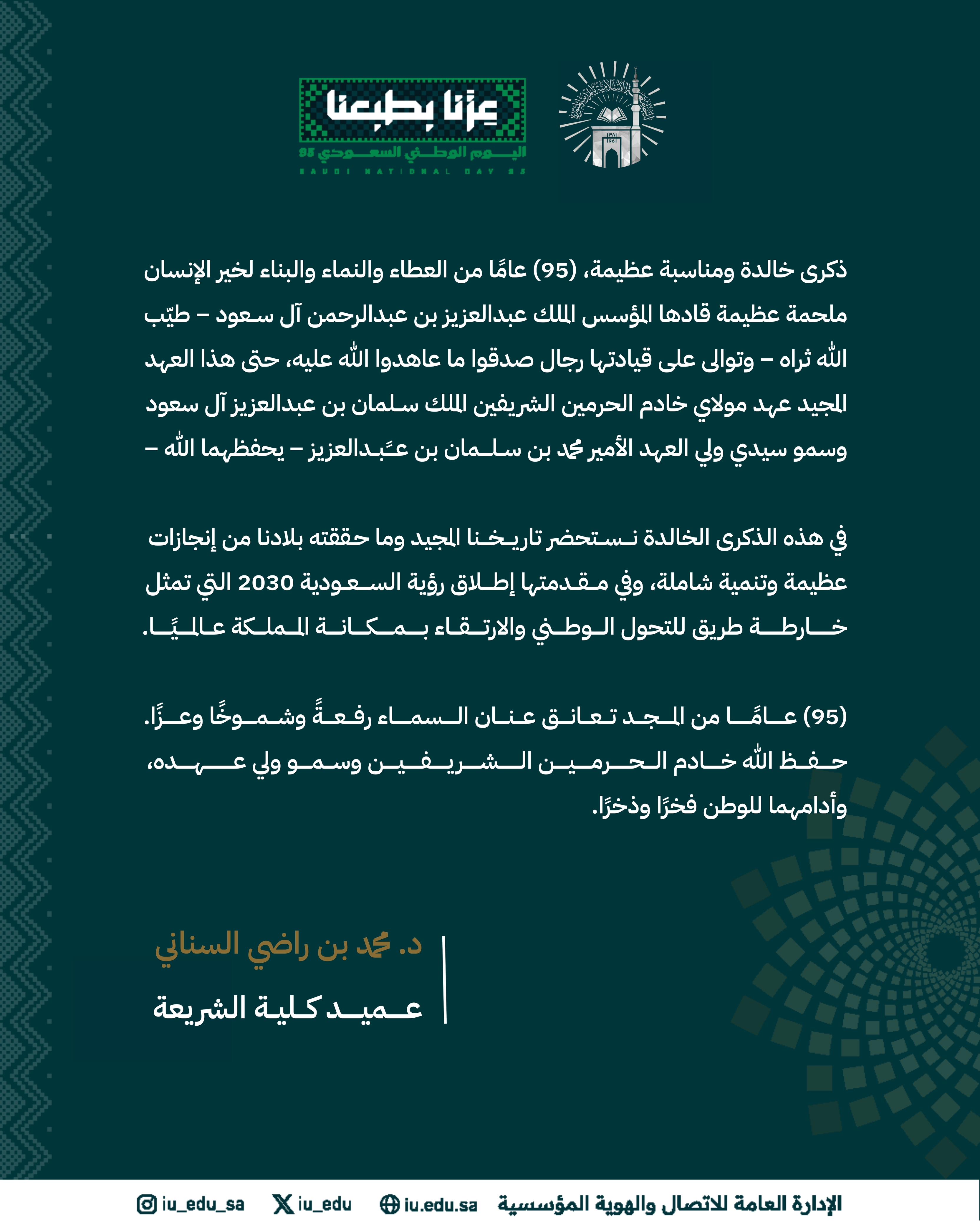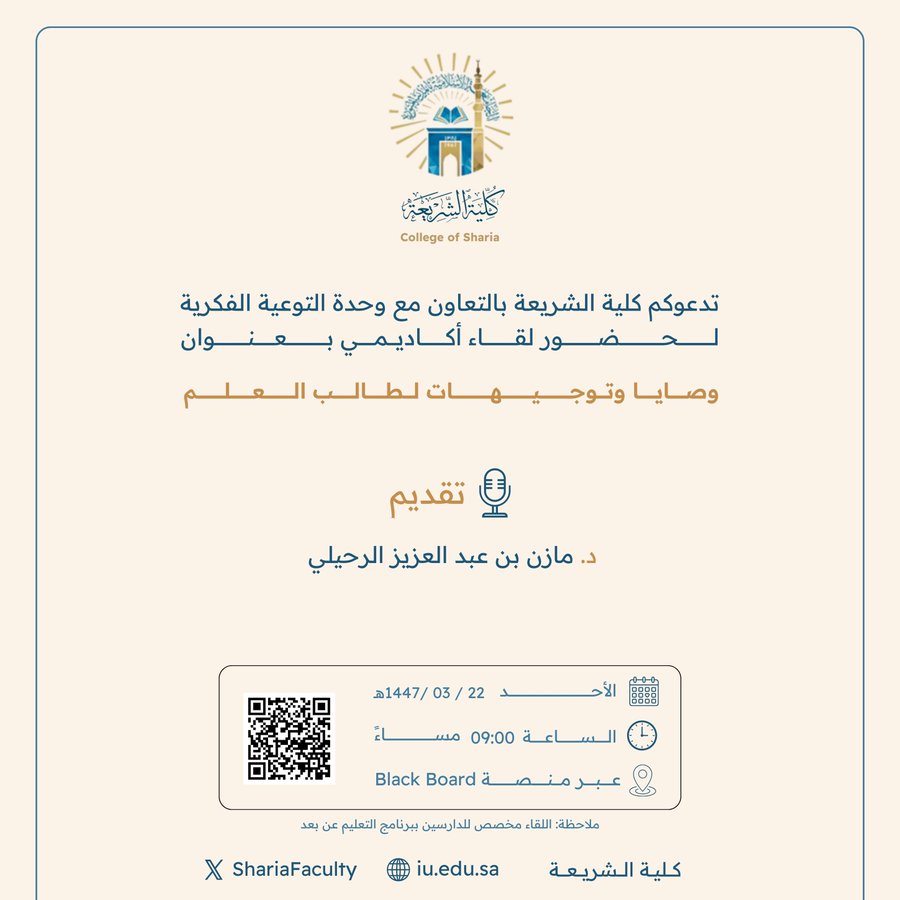 أنشئت الكلية في نفس السنة التي أنشئت فيها الجامعة في الخامس والعشرين من الشهر الثالث للعام 1381 للهجرة الشريفة بالأمر السامي رقم (11) الذي صودق بموجبه على النظام الأساسي للجامعة الإسلامية، حيث تضمن النظام الأساسي في مادته السابعة أن الجامعة تتكون من قسمين عالٍ، وثانوي، والقسم العالي هو النواة الأولى للكلية التي حملت فيما بعد اسم (كلية الشريعة). وبدأت الدراسة في 2 / 6/ 1381هـ وبعدد ( 85 طالباً ) ، ويجاوز عدد طلابها في الوقت الحالي 7.500 طالباً.