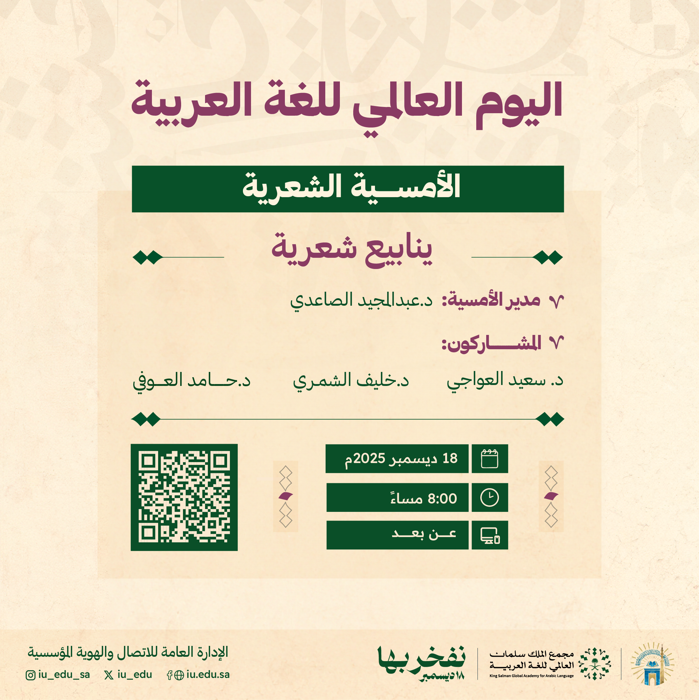 دعوة لحضور الأمسية الشعرية "ينابيع شعرية"