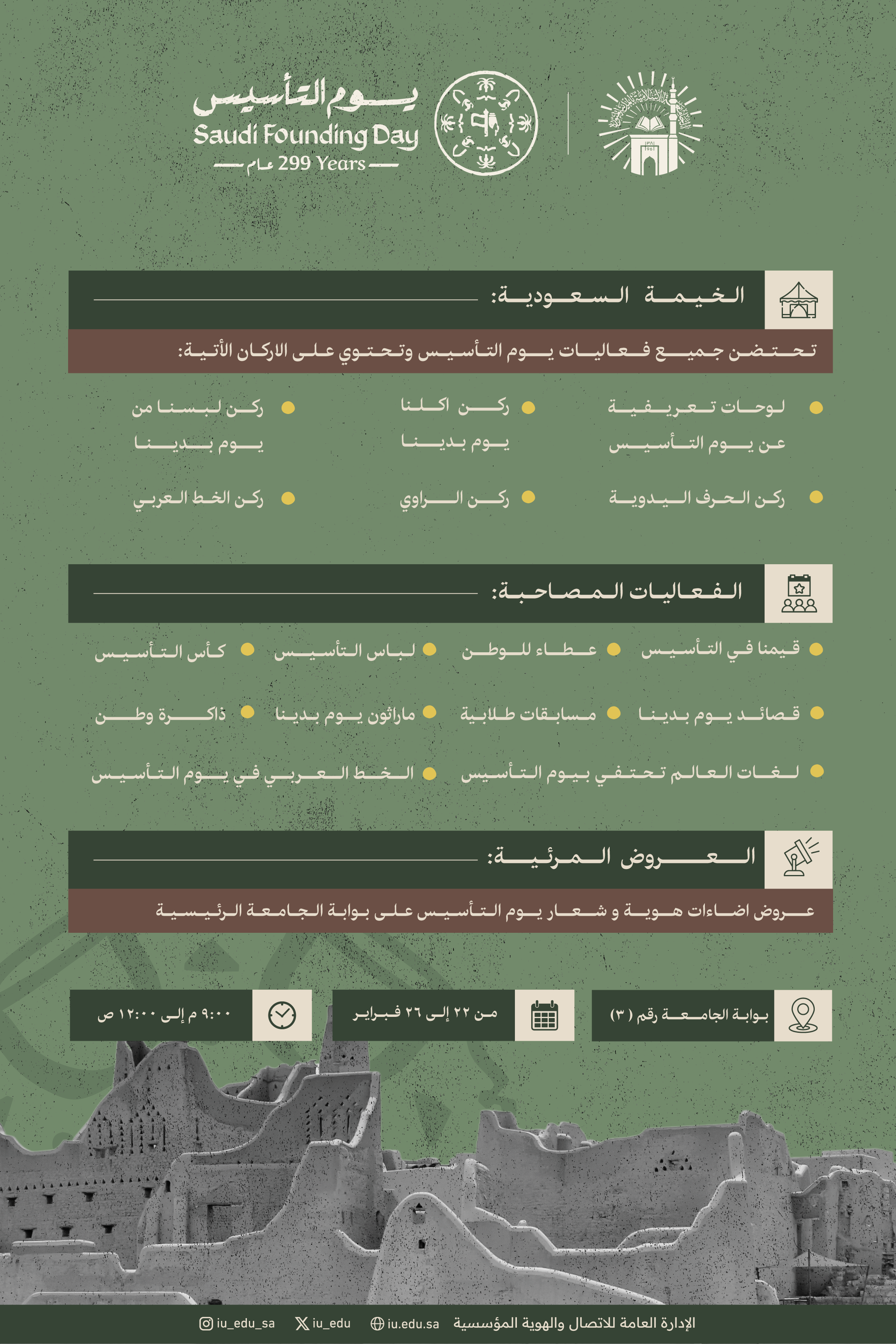 دعوة للحضور والمشاركة في فعاليات يوم التأسيس