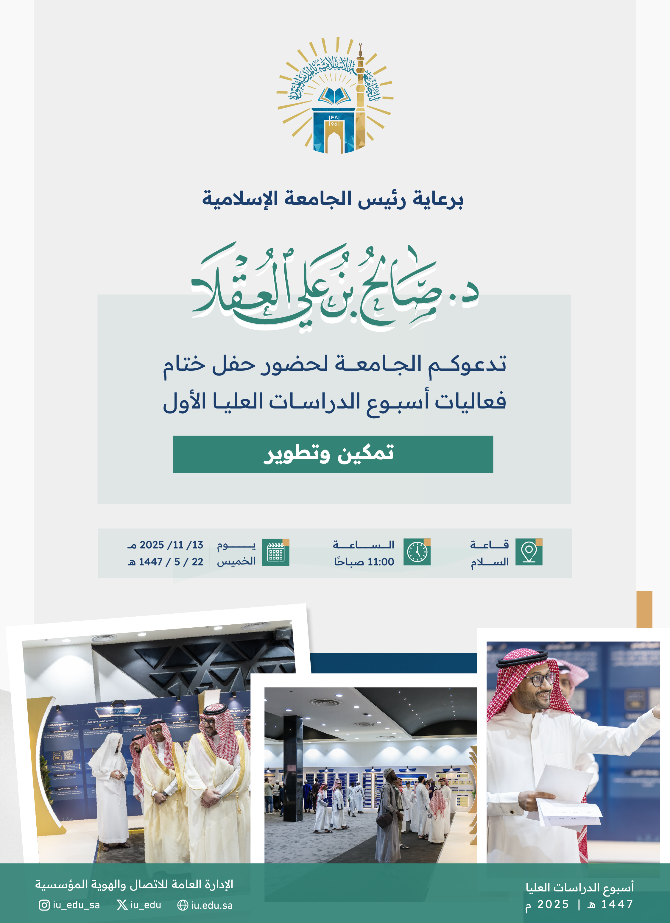 تدعوكم الجامعة الإسلامية لحضور الحفل الختامي لأسبوع الدراسات العليا الأول "تمكين وتطوير".