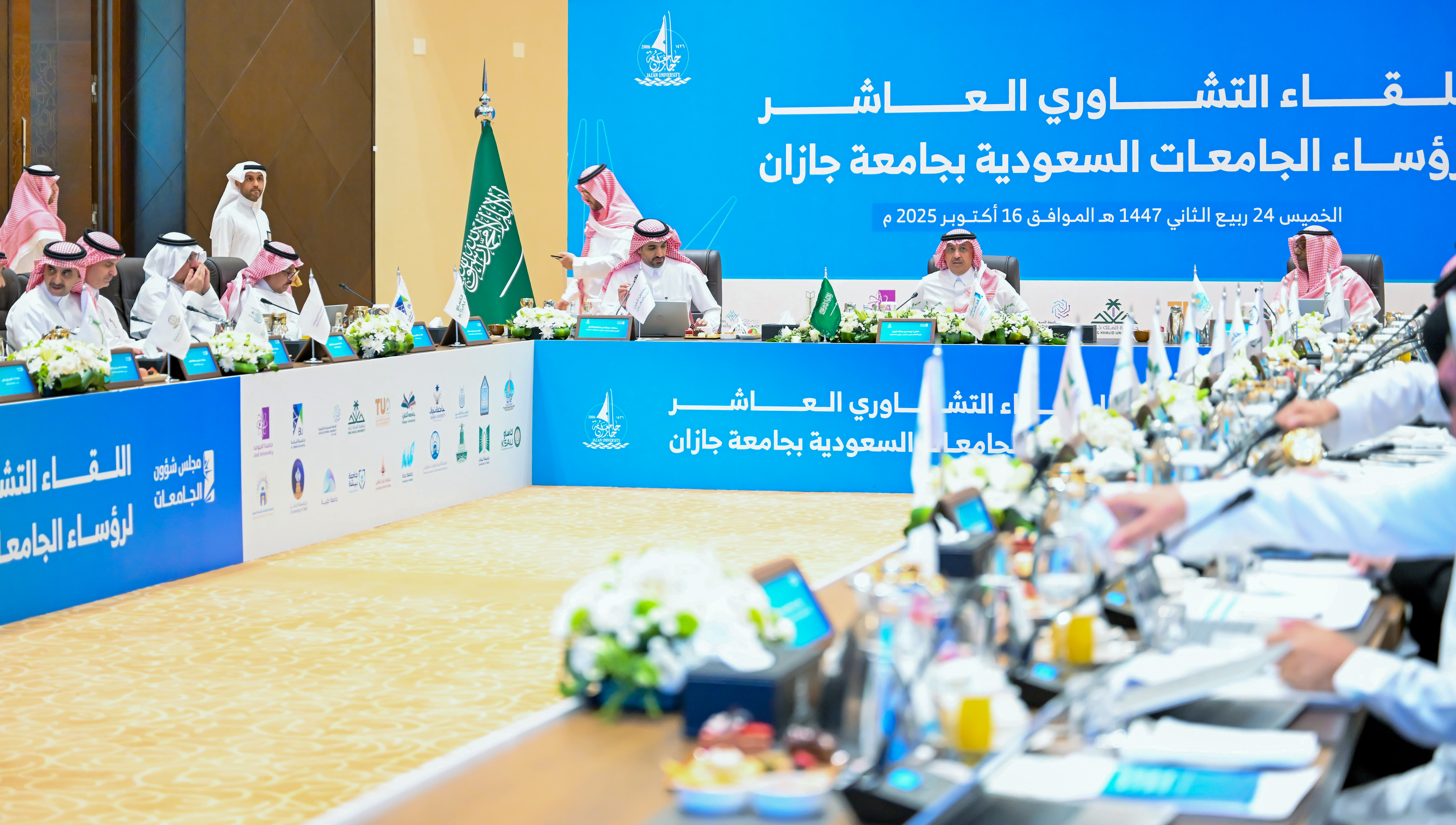 رئيس الجامعة الإسلامية، د. صالح بن علي العقلا، يشارك في الاجتماع التشاوري العاشر لرؤساء الجامعات في المملكة، والمنعقد برئاسة معالي وزير التعليم رئيس مجلس شؤون الجامعات أ. يوسف بن عبدالله البنيان، بتنظيم جامعة جازان.