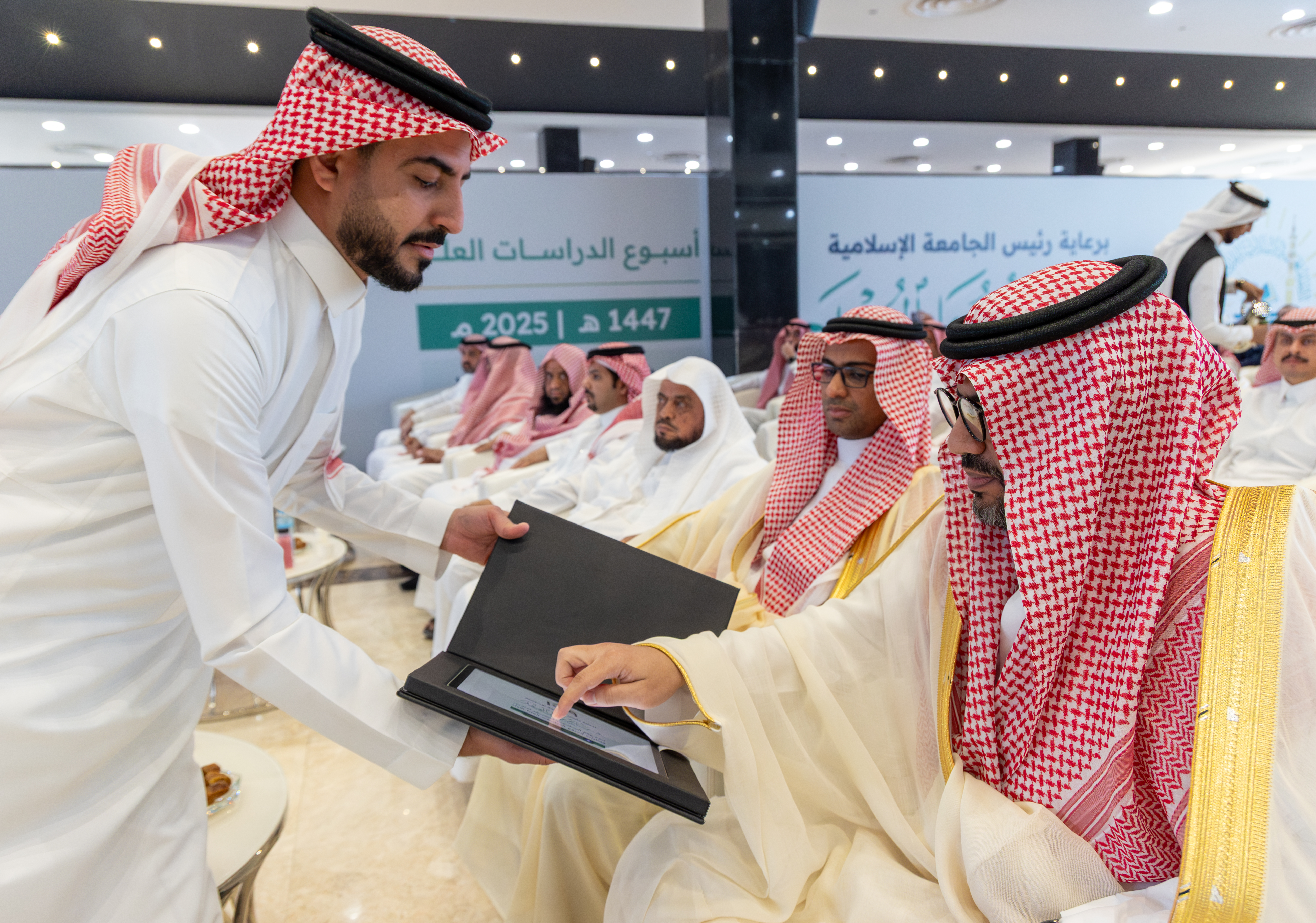 تحت رعاية رئيس الجامعة الإسلامية الدكتور صالح بن علي العقلا، أقيم اليوم حفل تدشين فعاليات أسبوع الدراسات العليا الأول تحت شعار "تمكين وتطوير"، وذلك في قاعة السلام خلال الفترة من 9 إلى 13 نوفمبر 2025م، بحضور وكلاء الجامعة، وعمداء الكليات، وأعضاء هيئة التدريس، وطلاب الدراسات العليا.