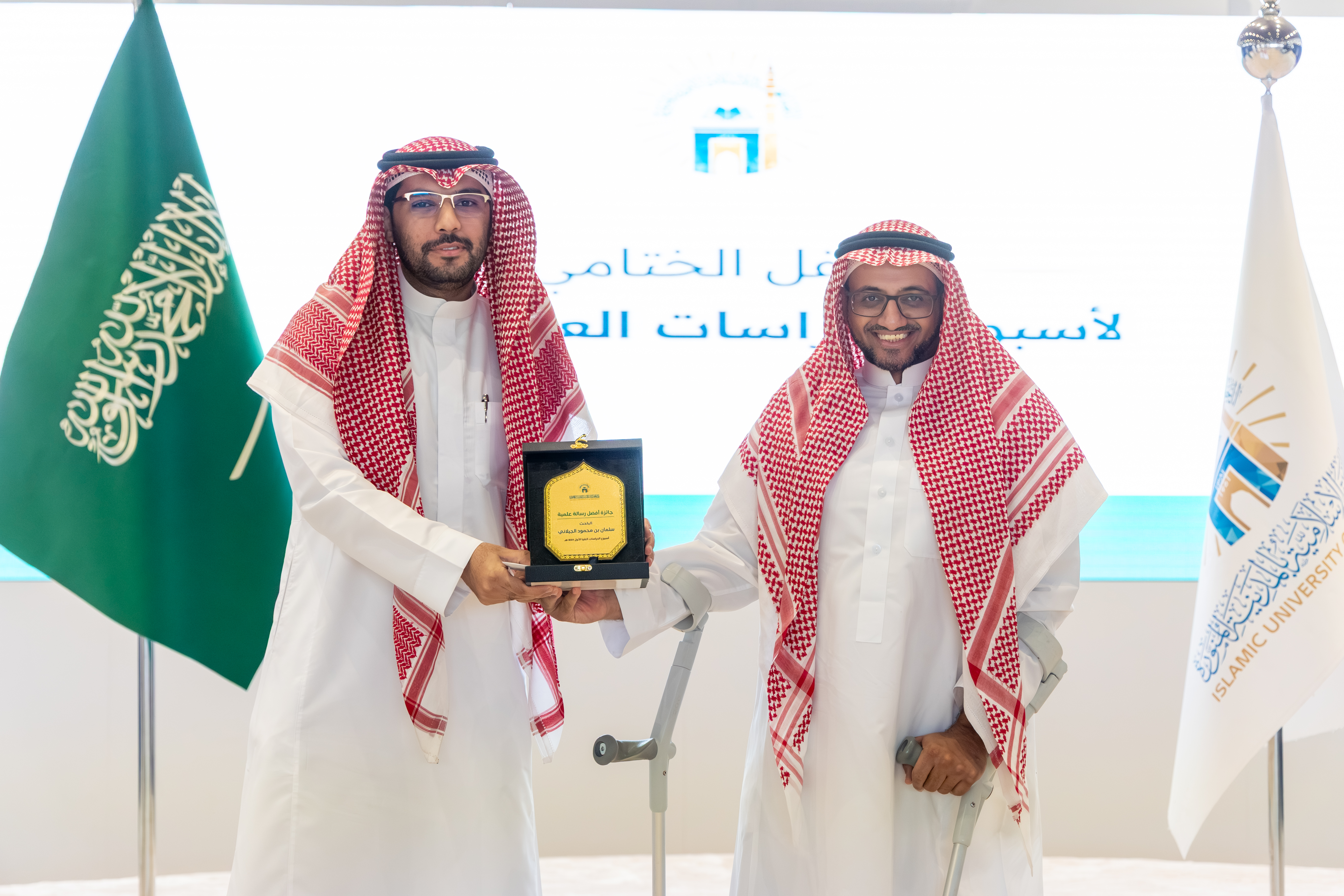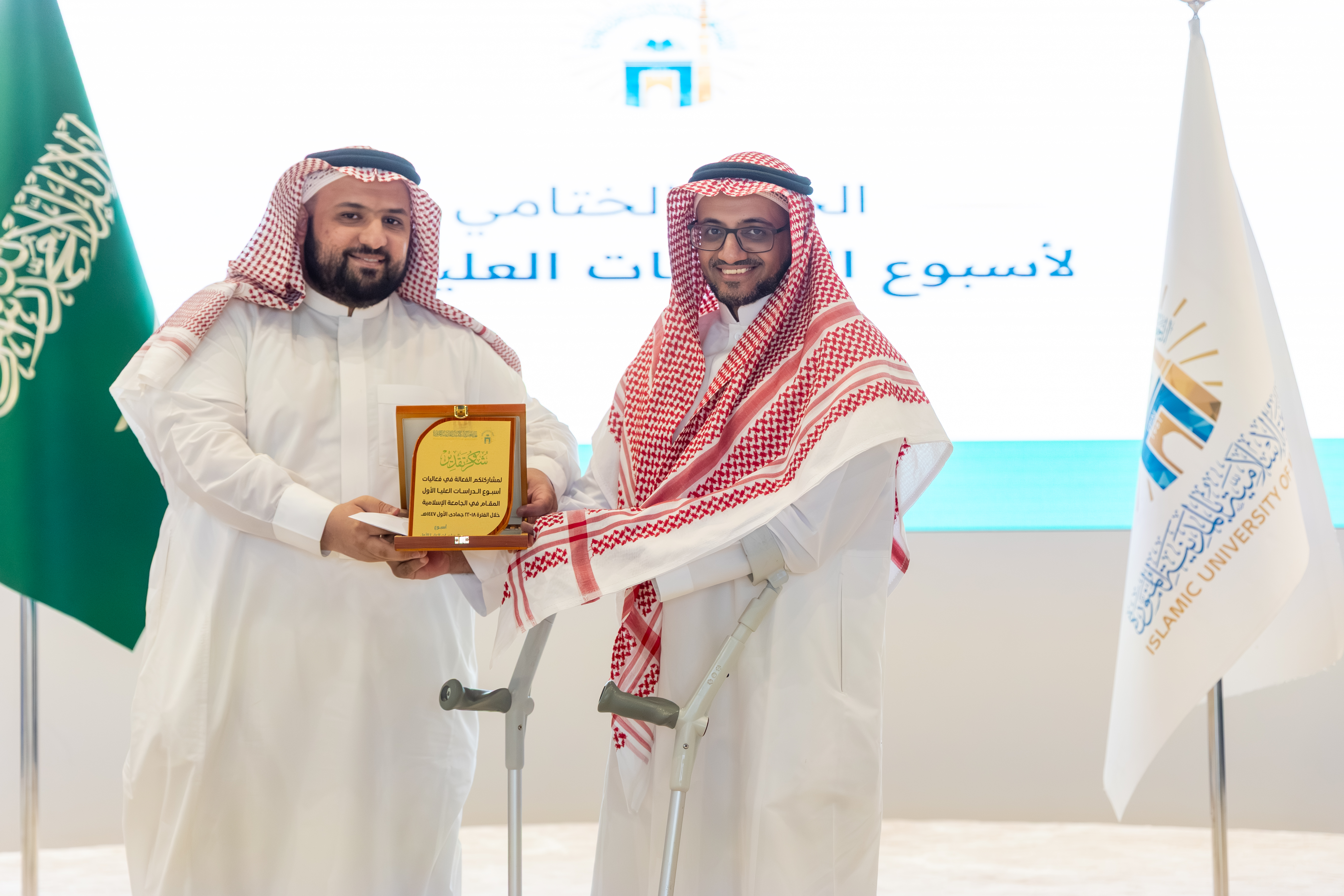 وشهد الحفل كذلك تكريم الفائزين بجائزة أفضل رسالة علمية في كليات: الشريعة، القرآن، العقيدة، القانون، الحاسب، الهندسة، والعلوم، إضافة إلى تكريم الطلاب الفاعلين من نادي الدراسات العليا تقديرًا لإسهاماتهم في نجاح الأسبوع.