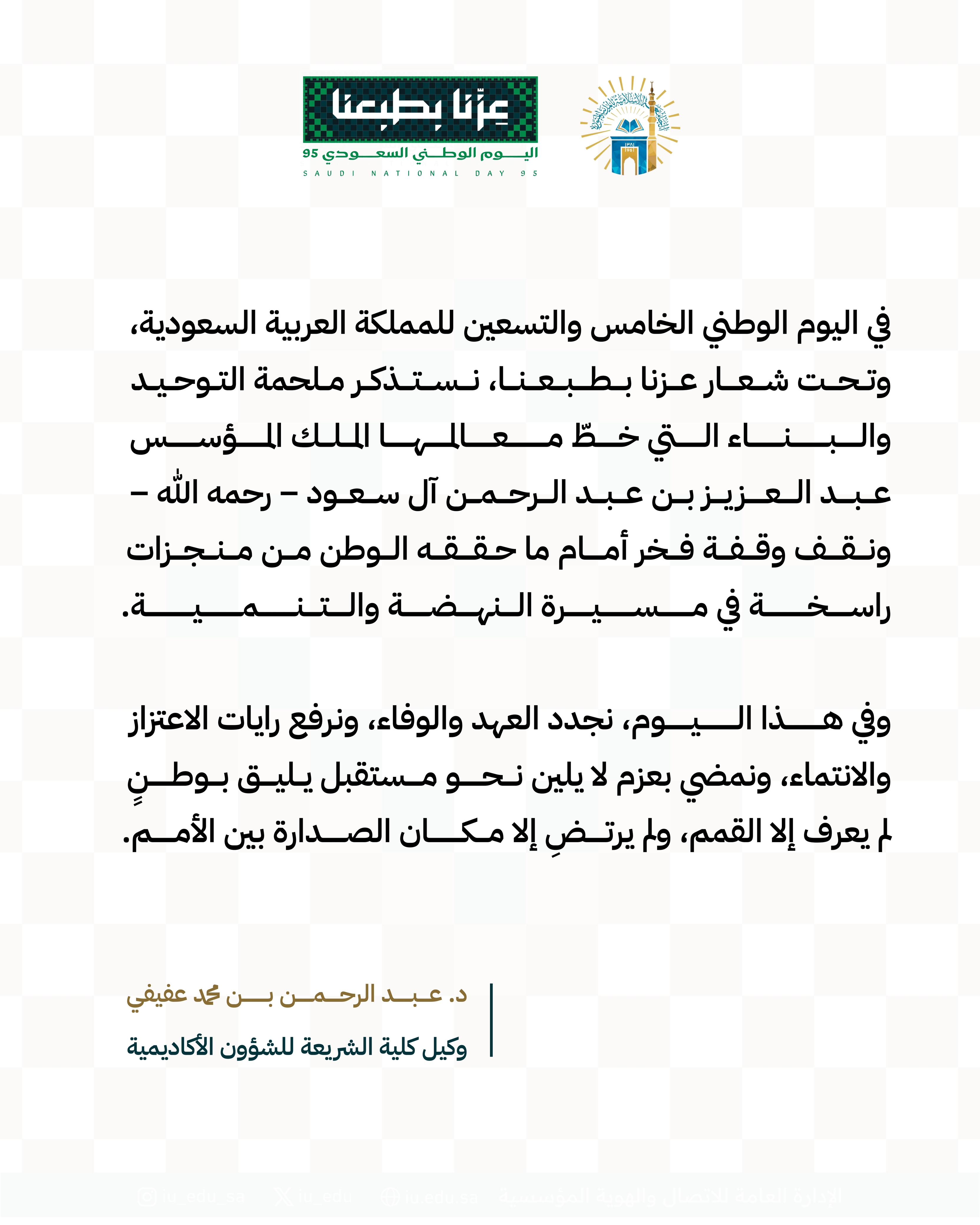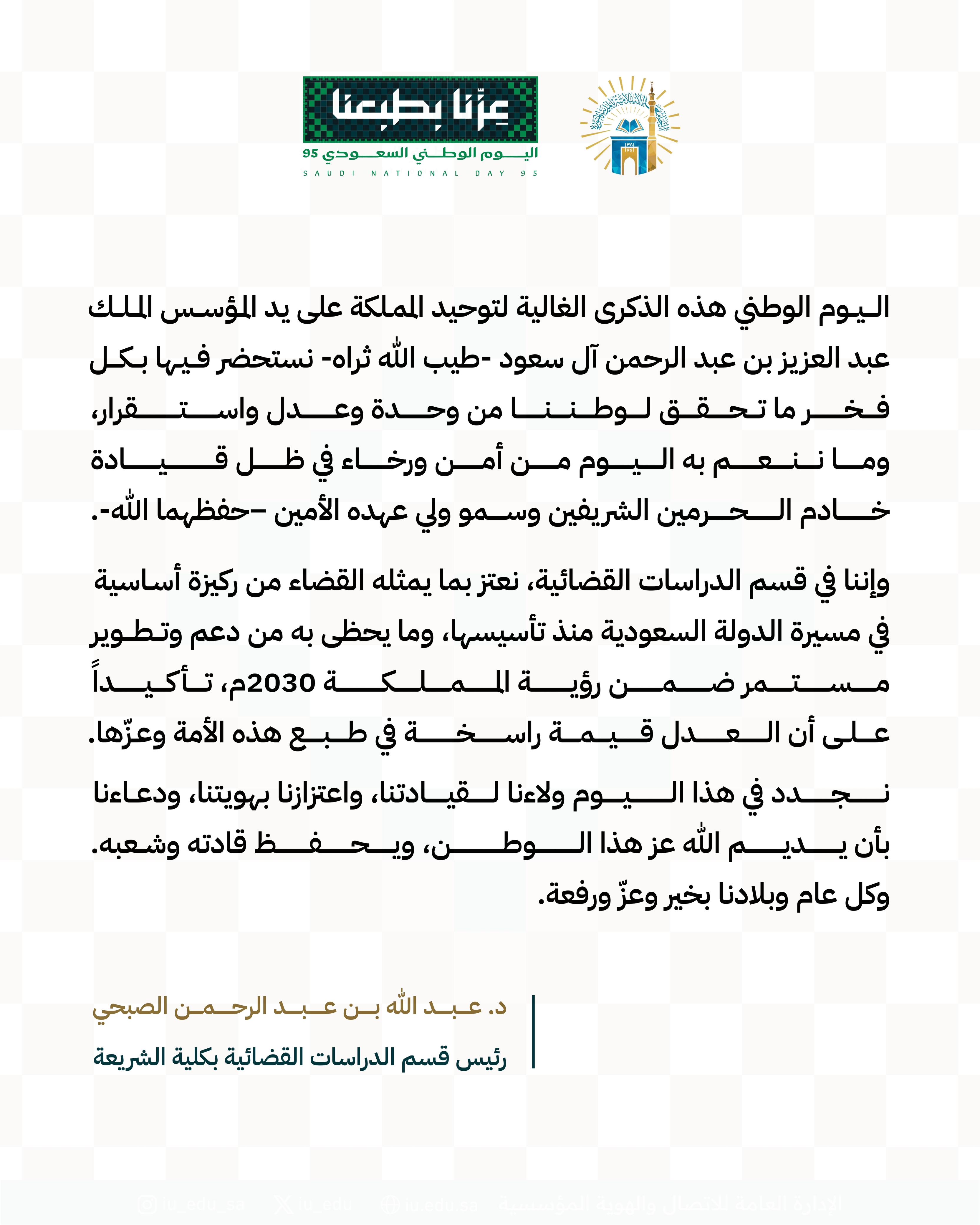 كلمات قيادات كلية الشريعة بمناسبة اليوم الوطني