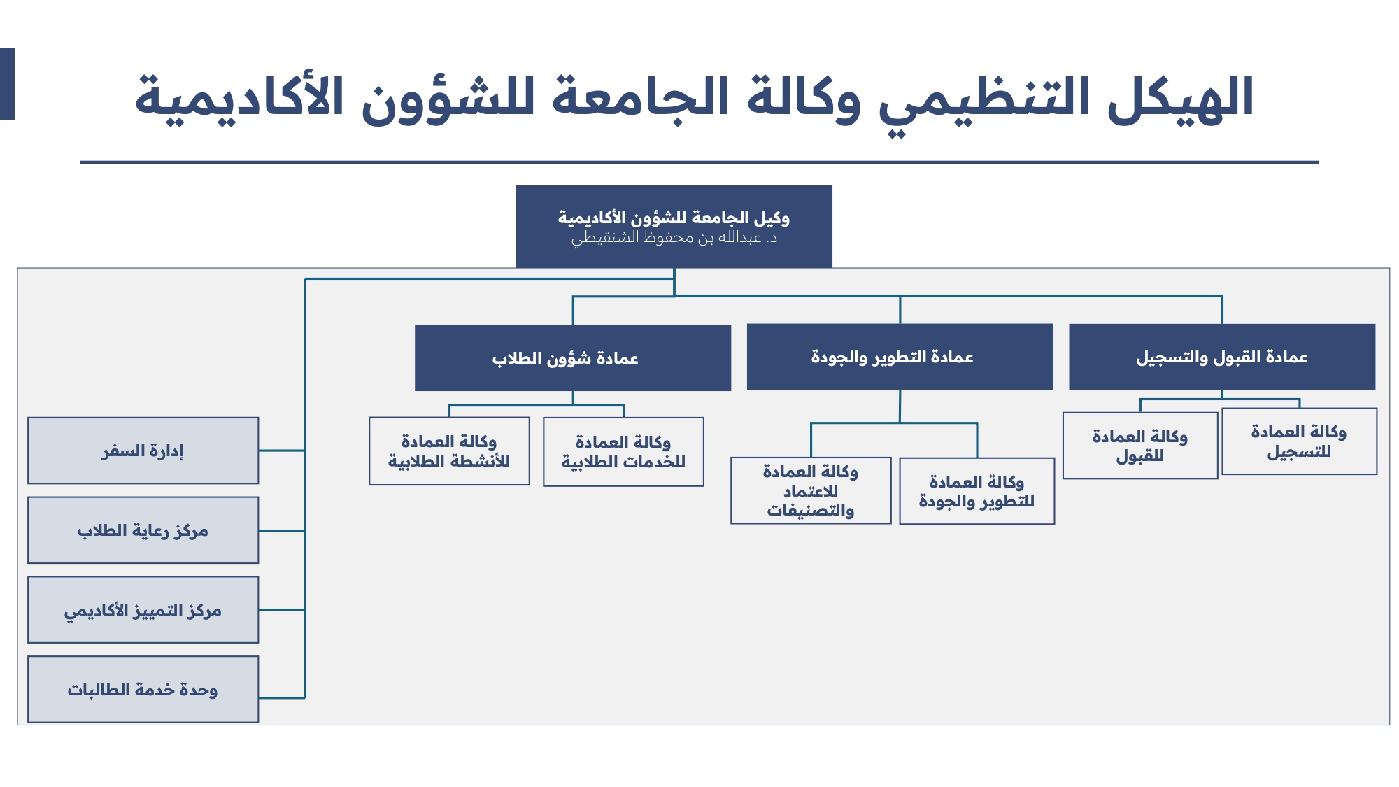 الجامعة والعمادات المُساندة لها لمُتابعة سير الطريقة الأكاديمية، وضبط جودة